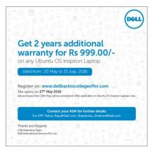 BUY ANY DELL VOSTRO LAPTOPS AND GET 2YEARS ADDITIONAL WARRENTY JUST PAY RS:999/- ONLY,VALID FROM 10 JUNE TO 10 JULY 2016.
